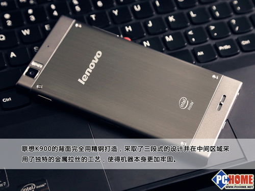 2、联想k900仅162g重,机身宽度为8mm。厚9mm,采用不锈钢合金加聚碳酸酯的材质,瑞士雪花铆钉镶嵌。其中背壳有四种材质可以选择。