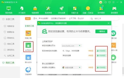 第一步打开360电脑管家,点击安全防护中心第二步找到浏览器防护功能,并点击查看状态第三步找到上网首页防护,并点击右侧齿轮状设置按钮 第四步在弹出窗口我们可以看到,360电脑管家默认锁定了360安全网址导航。