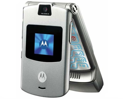 2、V70系列 推出时间:2002年 外观设计:特别的96x32点彩色屏幕,可用于简单的饼图、线图和其他简单的图标 特点:是第一款不带天线的摩托罗拉手机,开创了时尚小巧翻盖手机的先河。