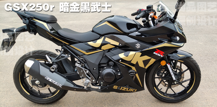 3、如果是要把铃木GSX250R用贴膜的方式,把原来的海神蓝版改为黑色版,只要贴纸质量过关就不会透,改好了效果还不错。