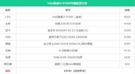 3、组装机电脑配置清单2022如下:处理器:Intel酷睿i510400F(散片)。散热器:TT水星S400RGB散热器。显卡:耕升GTX1050Ti4G追风版。主板:微星H510M爆破弹主板。内存:威刚8GDDR42666。硬盘:WDSN550500GM.2NVMe。