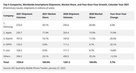 年手机销量排行榜前十名:三星(Samsung)、苹果(iPhone)、小米(Xiaomi)、OPPO、vivo、传音(transsion)、荣耀(honor)、摩托罗拉(Motorola)、真我(realme)、华为。