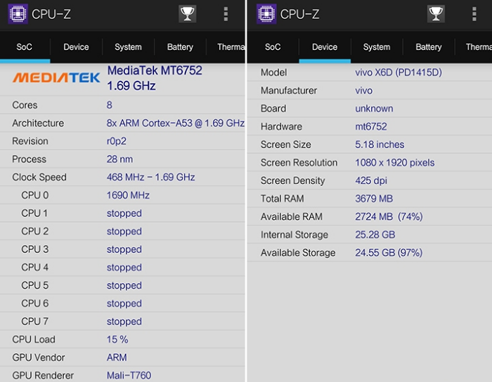 2、MT6752为64位处理器,八核心cortex-A53架构,主频7GHZ,搭配mali-t760mp2GPU,安兔兔跑分41000分左右,性能较强,功耗较低,属于性能和发热功耗较为均衡的手机cpu。