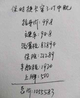 2、我们以保时捷Macan0T为例。目前该车裸车价55万元,购置税48230元,车船税400元,交强险费用950元,落地价合计5458万元。如果是贷款购房,我们以首付30%,贷款3年计算,首付213080元,月供11675元。