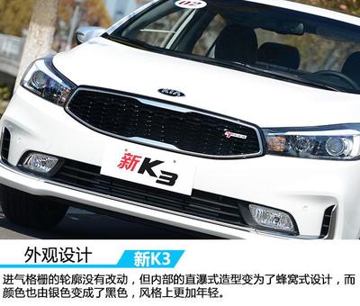 前进气格栅的颜色变浅了。后保险杠重新设计。车辆功能上:最新款K3全系标配后视镜加热功能。GLS AT可选装世界杯选装包。