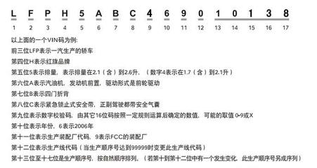 3、车架号是车辆的唯一标识,通常由17位数字和大写字母组成。车架号位于车辆前挡风玻璃下方,可以通过直接查看车辆或者车辆行驶证上的信息来获得。