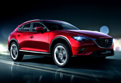 2、马自达CX-4 马自达CX-4是马自达公司自主研发的一款全新SUV车型,极富线条感和设计感。该车以奥特伍德概念车为基础,采用了KODO设计理念,融入了阳刚美学设计元素,极具视觉冲击力。