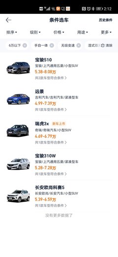 其它比较便宜的车宝骏310自动版指导价518608万宝骏的小型轿车,造型时尚得体,配置厚道,受年轻人喜爱搭载15L匹配AMT,已经省去了手动换挡步骤,属于广义上的自动挡车型,6万出头的顶配,自动挡均配备ESC。