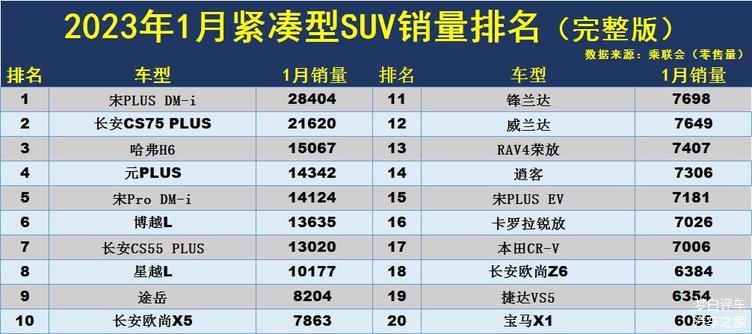 日产奇骏微跌8%,吉利博越同比增长19%,但排名跌出前十。比亚迪宋、本田XR-V、宝马X3和大众途岳全部上榜。