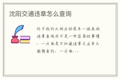 沈阳市交通违法行为查询方式有交通分局大队终端查询、服务网站查询、电话查询、手机查询、工具查询等七种。手机应用软件查询。打语音电话询问。通过手机写短信查询违规情况。沈阳非法查询工具,输入车牌信息进行查询。