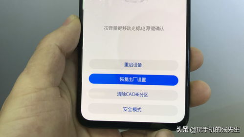 长按电源键加音量上键,进入到re boot界面。用音量键上下翻页,电源键点击确认,选择确认we data页面,清除完成后,点击友谊wipe cache partition,点击确认键,即可清除数据,恢复到初始界面。