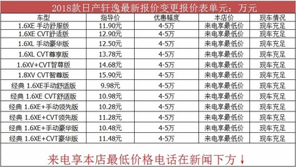 东风日产轩逸的价格根据车型、配置、地区等因素有所不同。目前,东风日产轩逸的厂商指导价在190万元至149万元之间。此外,东风日产轩逸还提供了丰富的配置和可选的套餐,例如智能驾驶辅助系统、倒车影像、定速巡航等。