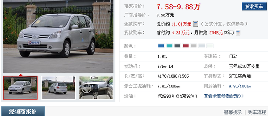 5、和发动机搭配的是4挡自动变速箱和5挡手动变速箱。0-100km\/h加速时间根据配置不同在12秒左右。虽然骊威要比同排量的骐达要轻近50公斤,但油耗要比骐达要高。