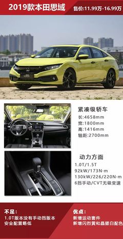 年出产的该款车最值得购买。根据查询有驾网得知,思域2016款220TURBOCVT豪华版是该款车中最经典也最值得考虑的车型。该车型配备了5L涡轮增压177马力发动机,同时拥有上坡辅助等高科技配置。思域一般指本田思域。